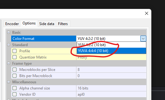 All files rendered are ProRes 422 HQ. All adjustments do not effect file codec or alpha.