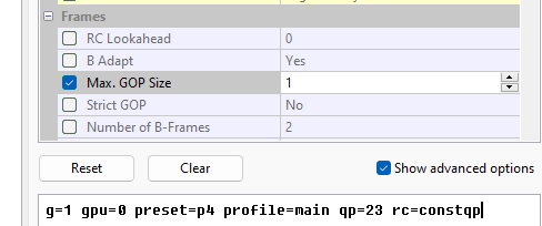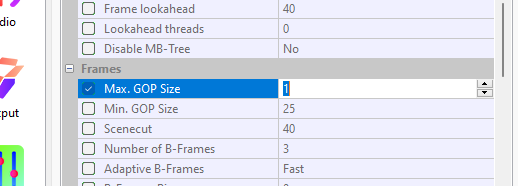 So how do I get Intra frame? Can I just change the I-P ratio to 1.0? Is that forcing only i-frames?