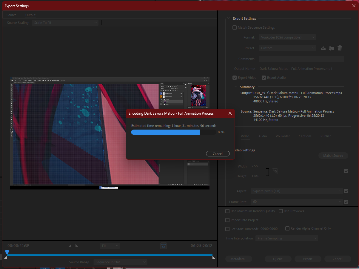 6 hours of duration video would take est. 3 hours to render with Voukoder plugin. But recently, it is changed.