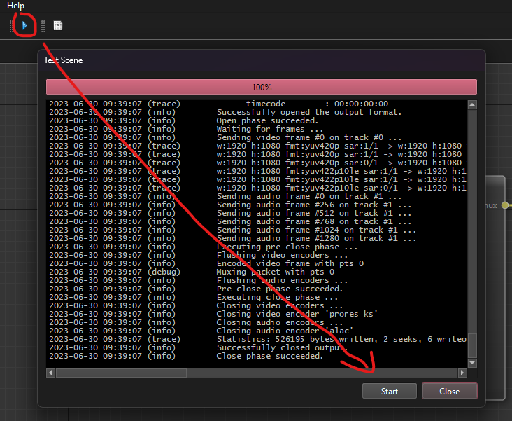 Regarding the 3. point: Can you open the scene and click on the Test run button and copy the log in here?