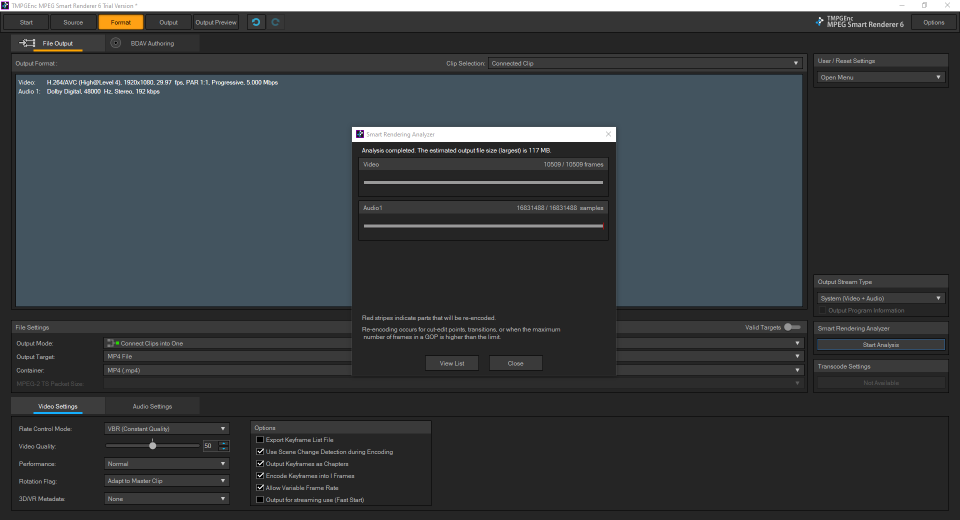 "The reason of smart rendering of your source file "Sequence 1080p 29.97.mp4"