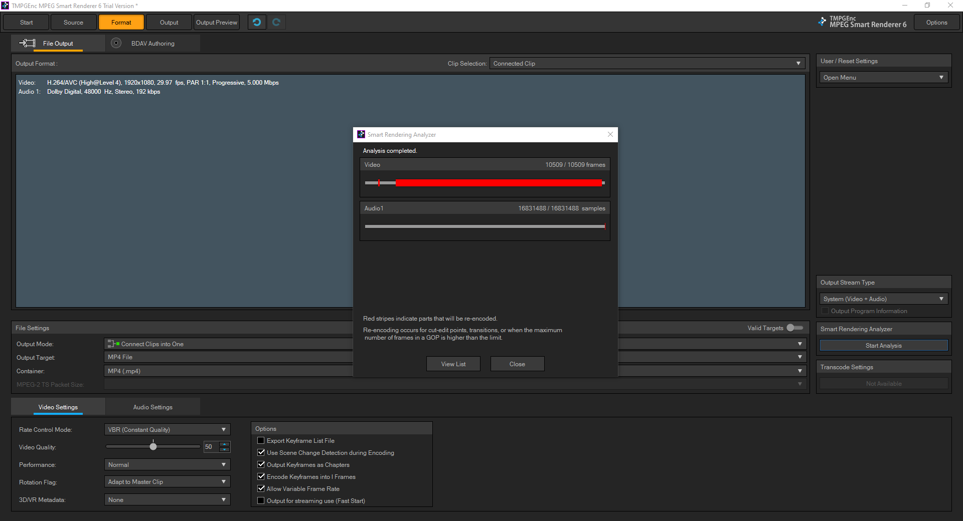 won't be re-encoded. You can check again in the Smart rendering analyzer."