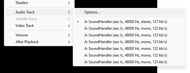 This could result in a file like this (with 1 video track and 7 audio tracks):