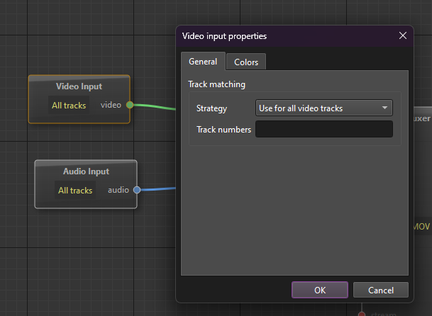 To do this you can map either all or specific tracks coming from your NLE to input nodes of a specific media type.