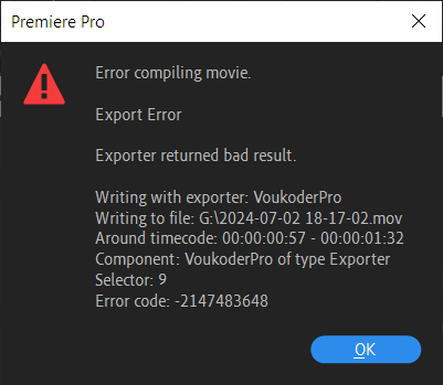 Even prior to this Voukoder used to fail to export maybe 1/3 times I tried, though usually if I just pressed export again it would work so I didn't care.
