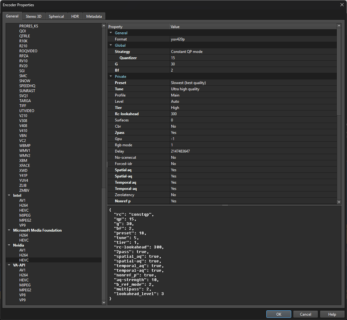 Not even the default settings for when I select NVENC seem to work, for either HEVC or H264. There may be some sort of broken setting that I am not skilled enough to notice? Not sure......Okay, it seems to be working now for some reason, despite consistently not working all day yesterday. It seems that the Ultra High Quality setting under Tune seems to immediately break it. I think that came with a recent NVENC update? Perhaps support for that isn't in FFmpeg or Voukoder yet? I did try turning that setting off before I made this post, but it seems like after taking a break for a day made it start working correctly. Maybe Windows automatically cleared some sort of cache or something, idk.