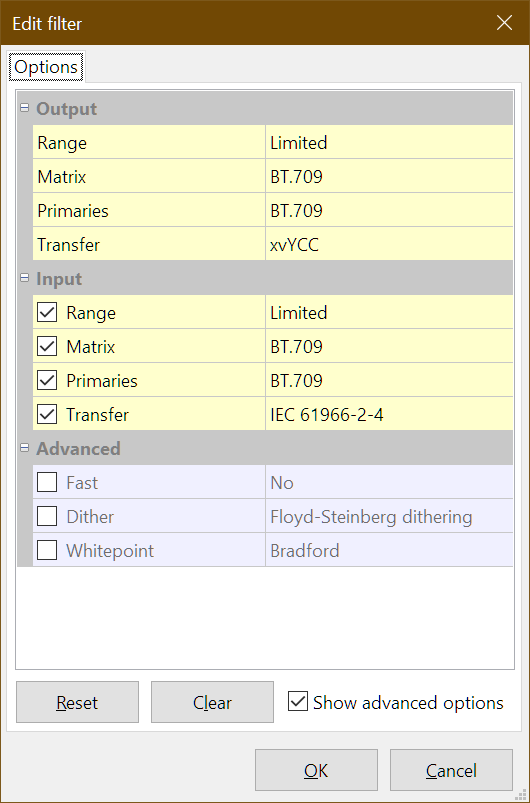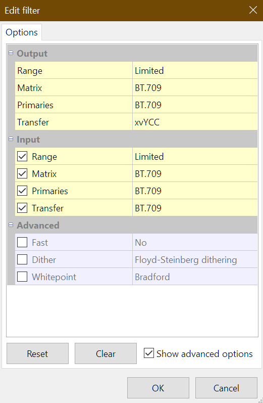 Now I have to set the input filters to BT709/XVYCC as well, and only then will the rendered file be correct.