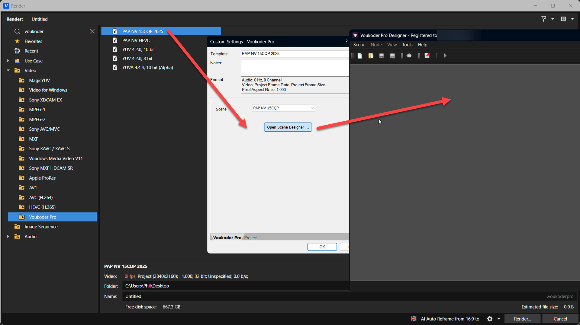 • Checked and double-checked license in Scene Designer and in \AppData\Local\VoukoderPro\license.txt