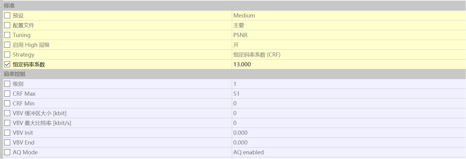 Really don't bother with those other settings. Set a CRF level, and leave the other settings at default. 13 or 14 seems good for HDR to me.