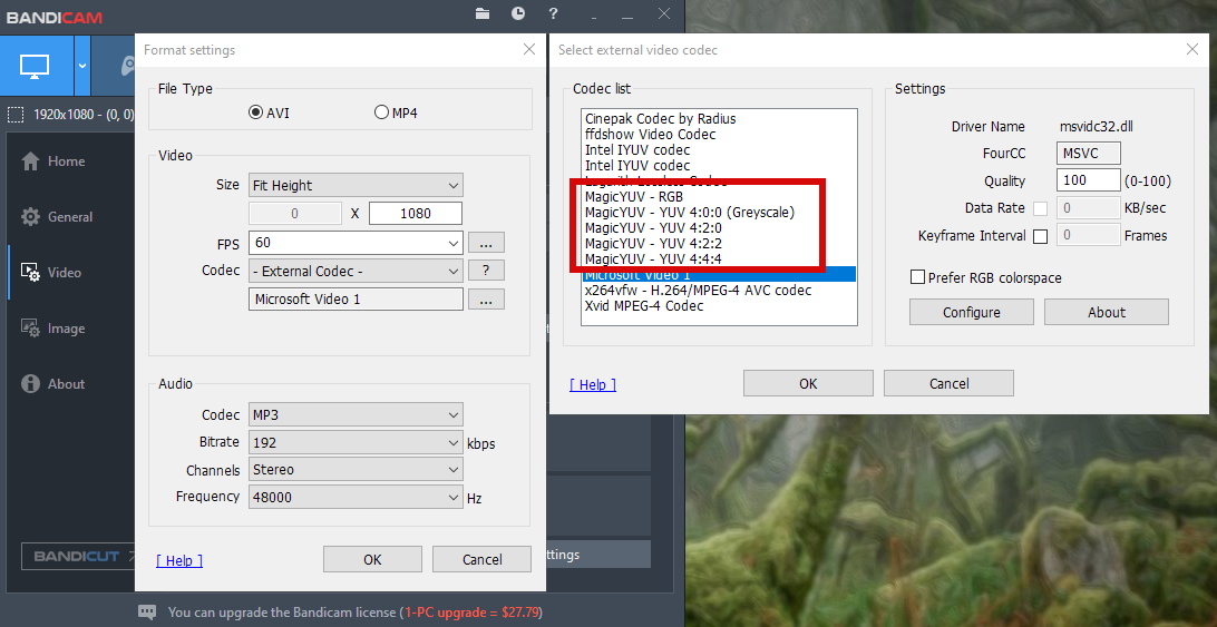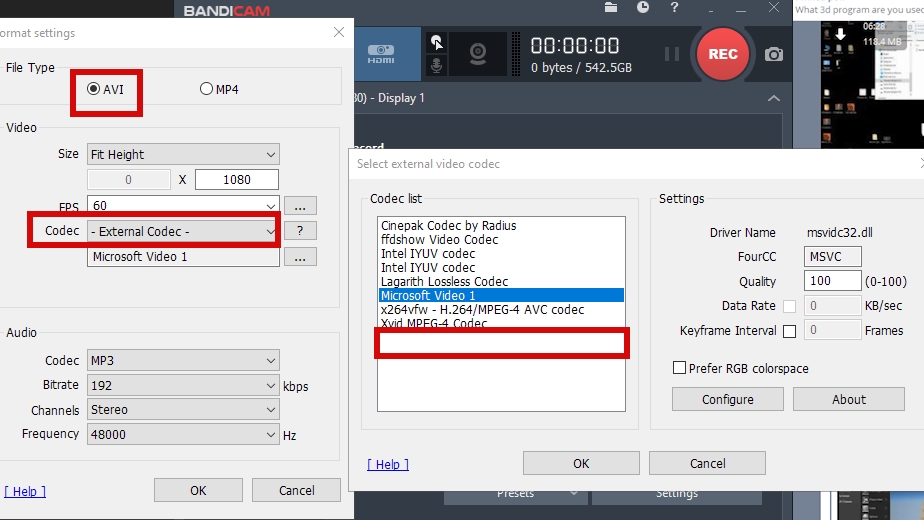 So, as I understand, I should download MagicYUV codec, then selected "AVI" and it in External codecs? Right?