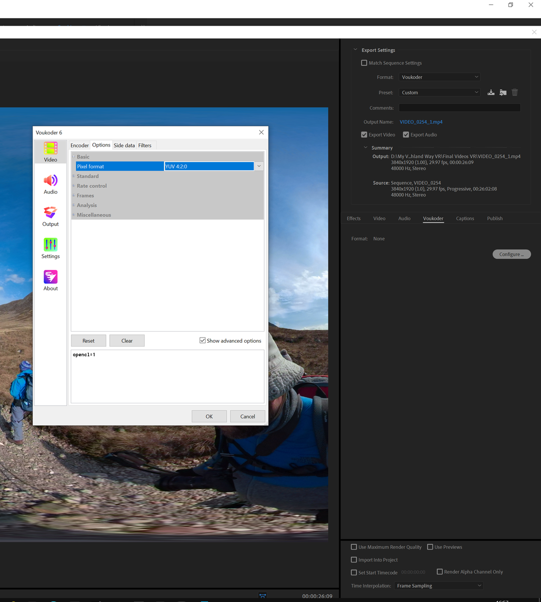 • Thank you for your response. Is there a way of adding FFMPEG commands to the Voukoder GUI? Below is an extract from https://www.vrtonung.de/en/ffmpeg-codes/ as one example. I just dont know how to benefit from voukoder and add VR related settings on top. :)