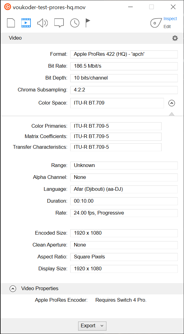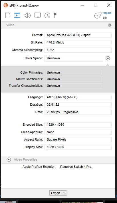 Exported 1919 frames in 7 seconds. (avg. 242.30 fps) [UYVY422->YUV420p]