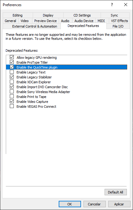 ...and in VEGAS Pro 18 or higher, the Quick Time plugin option enabled in Preferences/Deprecated Features.