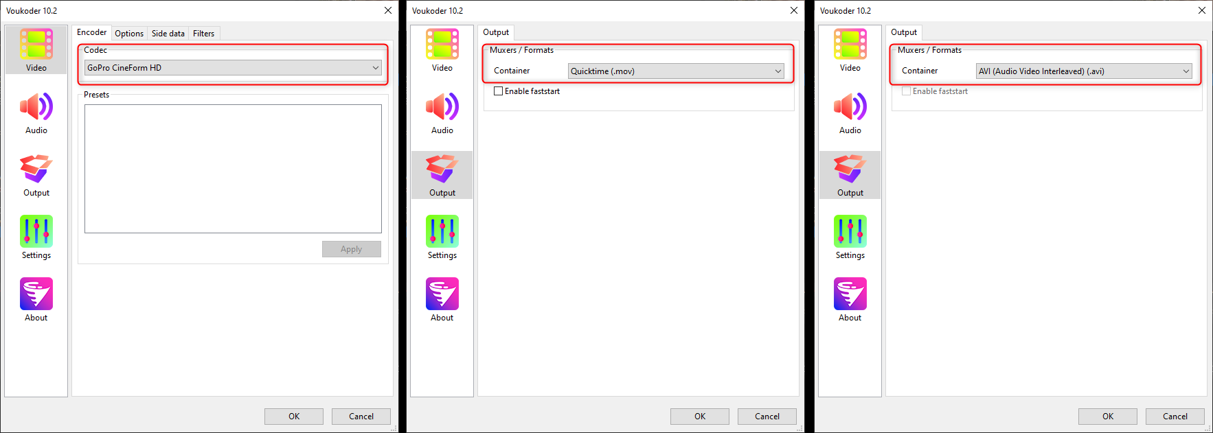 ...and also in Go Pro Cineform HD codec + .mov and .AVI containers.