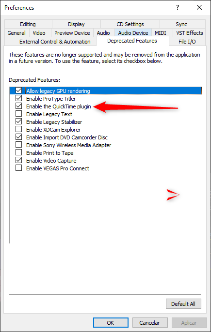 ...and in VEGAS Pro 18 or higher, the Quick Time plugin option enabled in Preferences/Deprecated Features.