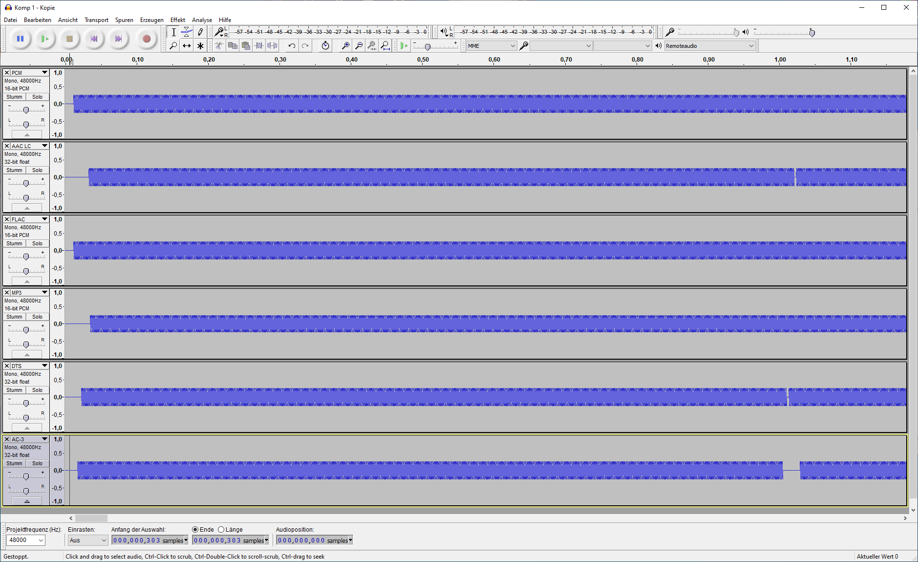 This happens with AAC, AC-3 and DTS. The others work fine.