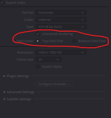 Hey it seems like i have found a solution but not inside the voukoder settings. I thought those settings are obsolete and ignored when using voukoder but the interlace option is actually working. Sorry to bother you with that.