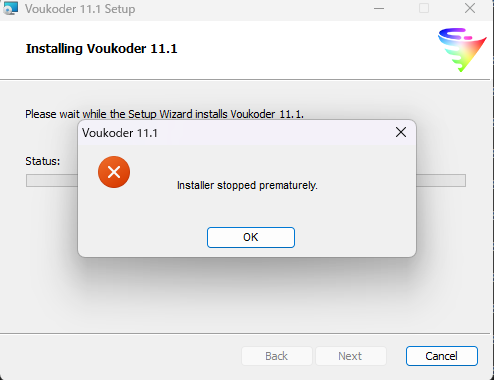 Hello. Not technically a "bug", but this happened when I was trying to install Voukoder 11.1 as an upgrade from 10.1.