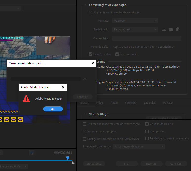 When exporting in Premiere Pro 2023 and 2021, it gives the error "Adobe Media Encoder" wallmss April 4, 2023 at 2:12 PM When exporting in Premiere Pro 2023 and 2021, it gives the error "Adobe Media Encoder" (yes, that's all it appears ), but if I select any other format other than voukoder, it works normally.