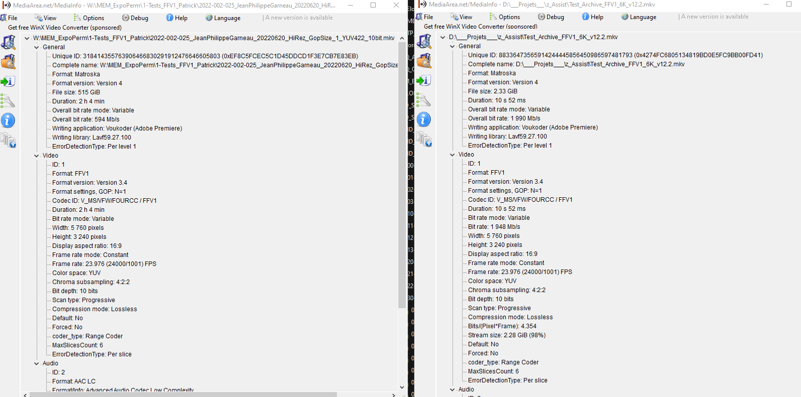 Note that using the same source footage, encoding with another ffmpeg GUI, with the same settings, the result has the same average of 600Mb/s as our original test. The ffmpeg library is Lavf60.3.100 for Voukoder 13.1 and Lavf60.6.100 for the other GUI.