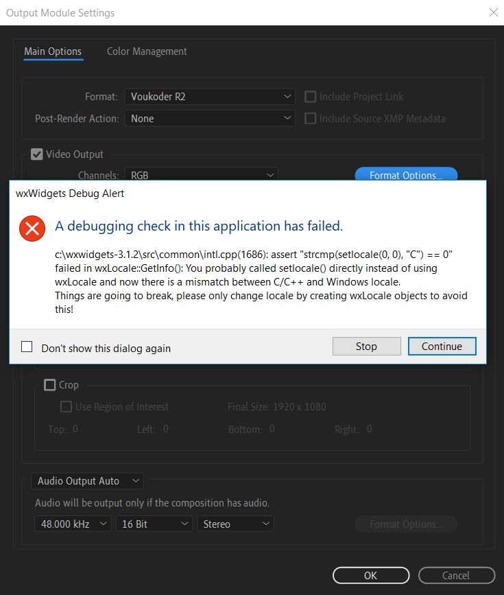 After Effects bug? DSalt 26. August 2019 um 08:57 Hi I'm getting this message in After Effects when choosing Voukoder R2 then 'Format Options...'