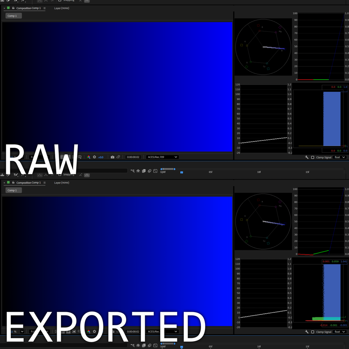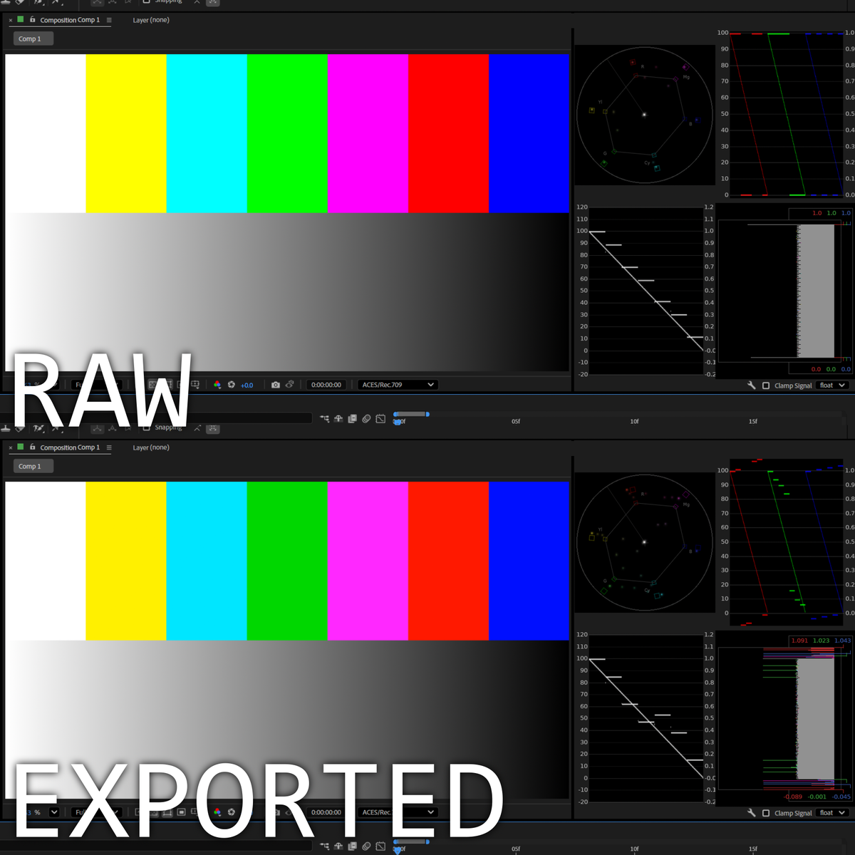 Every thing I tried (8/16/32 bit, OCIO & Adobe Color Management) and VKP 2 works well (on same config)