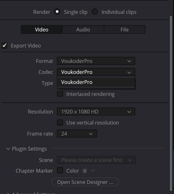 I am unable to make an export with Voukoder Pro. When I am trying to use Voukoder Pro to export in Davinchi Resolve Studio 18.6 on my PC it gives me no options under the Codec dropdown menu. Under the Codec menu it just says ' Voukoder Pro.' If I try to export I get an error message that says, ' Render Job failed as the current clip could not be processed. Codec is not open yet.'