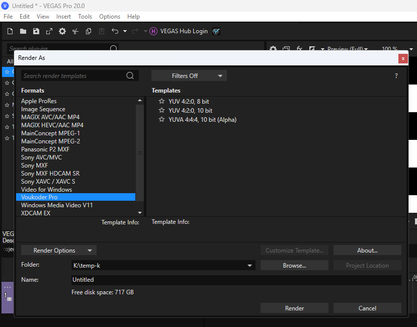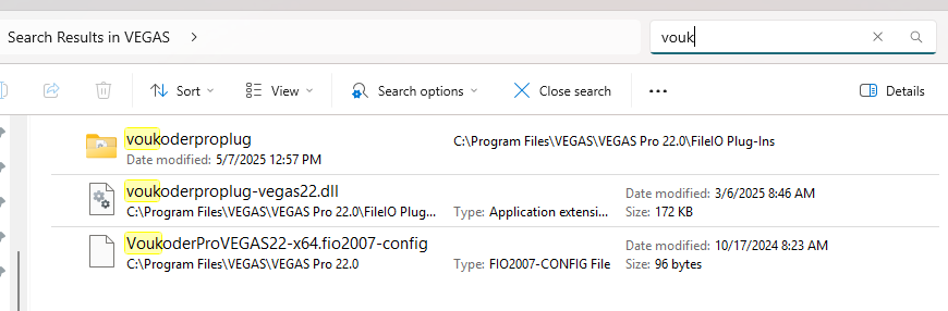 When Voukoder didn't show up as a Vegas render option, I of course tried "repair", "uninstall" and re-install for Voukoder.