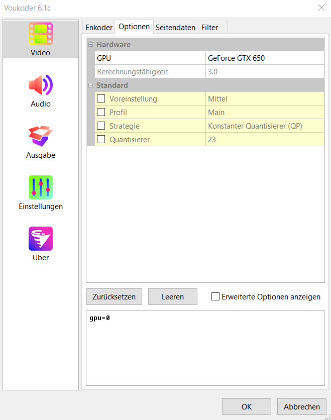 Nach Install von Vouk 6.1c kann ich den NVENC aufrufen und verwenden.