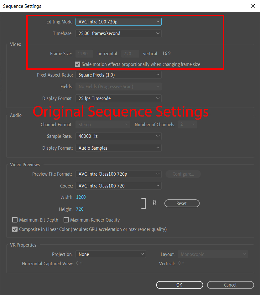 If I create a new sequence based on video. Video encoding is normal. Even if I change the size of the video (not the frame size of the sequence), add effects, crop the length of the video.