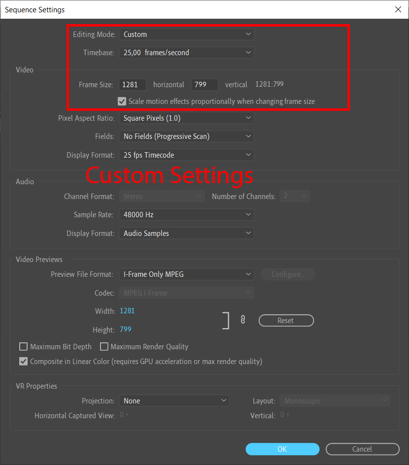 But if I create a custom sequence, the video will not be encoded. Premiere pro just crashes.